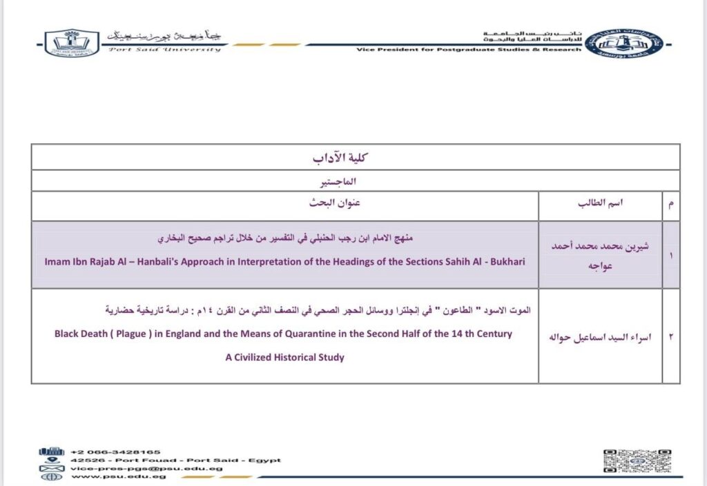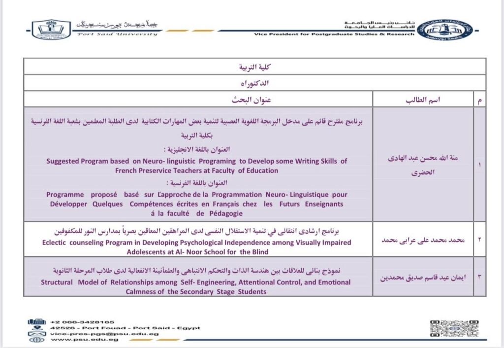 الدرجات العلمية الممنوحة سبتمبر 2025