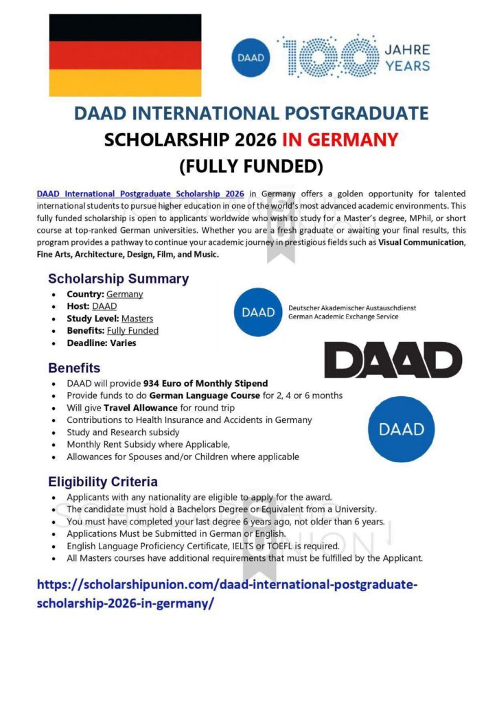 منحة DAAD الدولية للدراسات العليا 2026 في ألمانيا (ممولة بالكامل)
