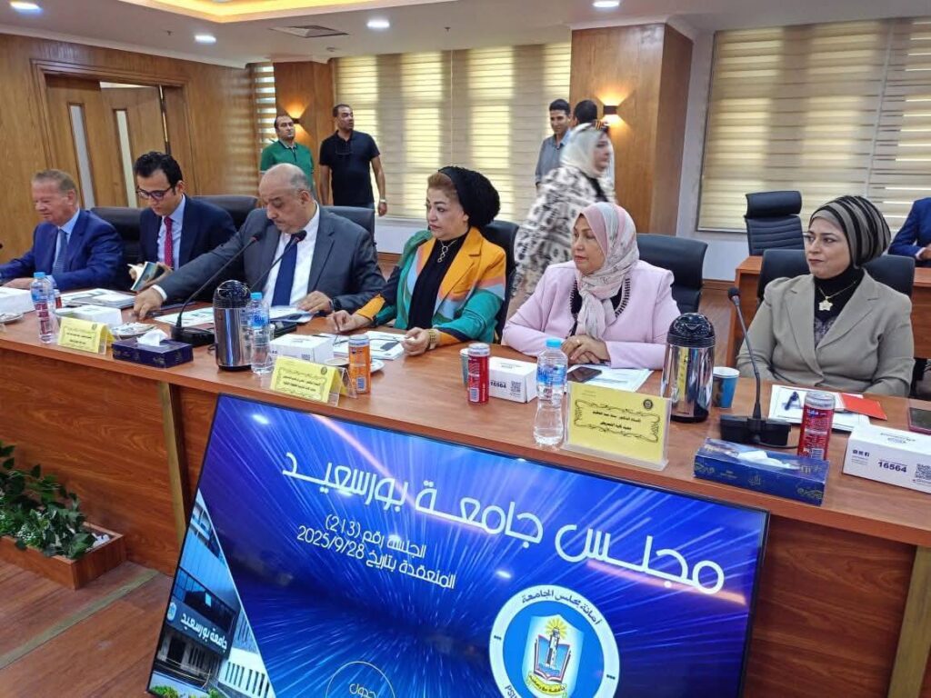 عقد مجلس جامعة بورسعيد اجتماعه الدوري برئاسة الأستاذ الدكتور شريف صالح، رئيس الجامعة، وبحضور اللواء أركان حرب محب حبشي، محافظ بورسعيد، والسادة أعضاء المجلس.