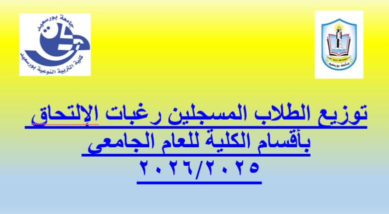 توزيع الطلاب المسجلين رغبات الإلتحاق بأقسام الكلية للعام الجامعي 2025/2026بواسطة Spcd Author / أكتوبر 13, 2025 توزيع الطلاب المسجلين رغبات الإلتحاق بأقسام الكلية للعام الجامعي 2026/2025 توزيع-الطلاب-المسجلين-الرغبات-13-10-2025